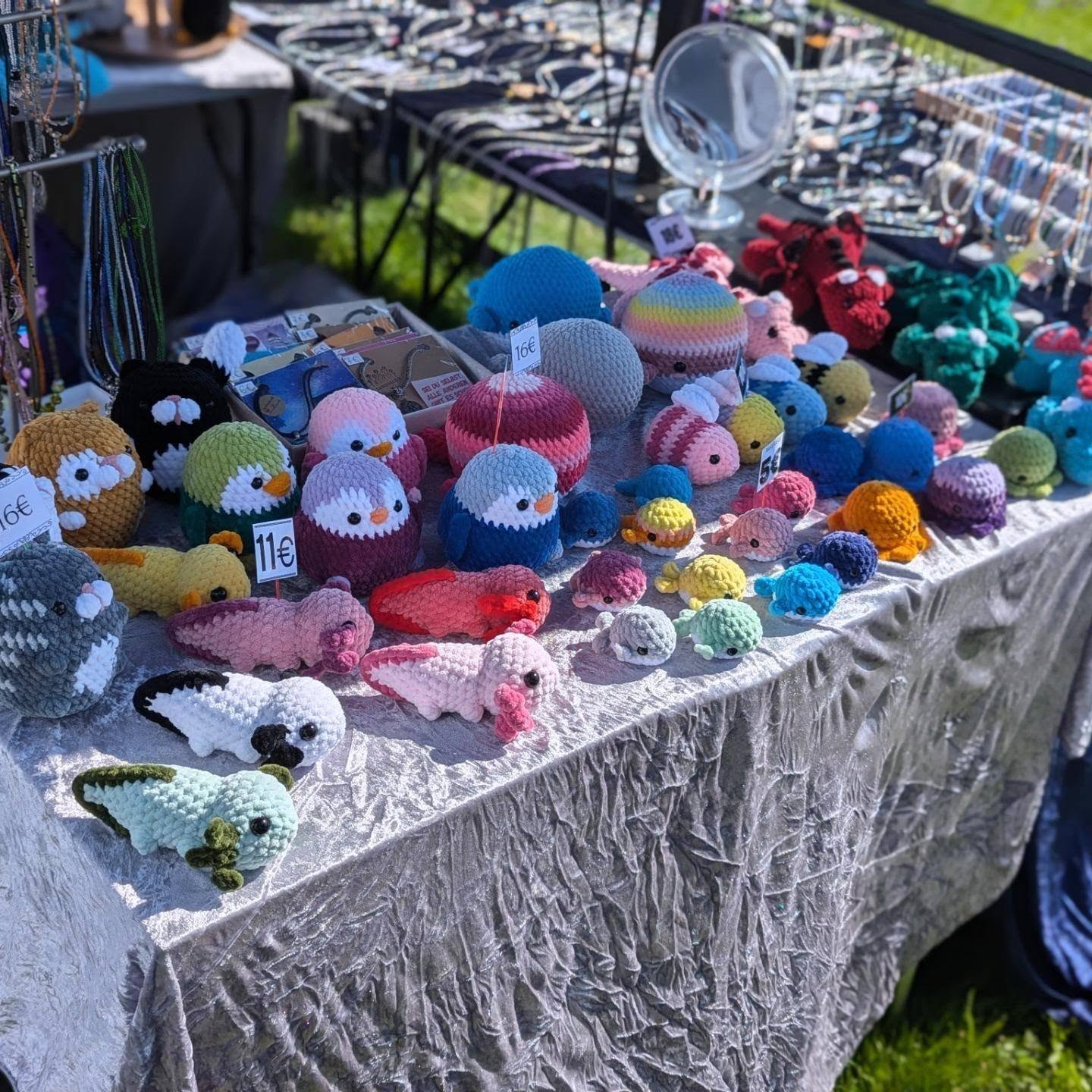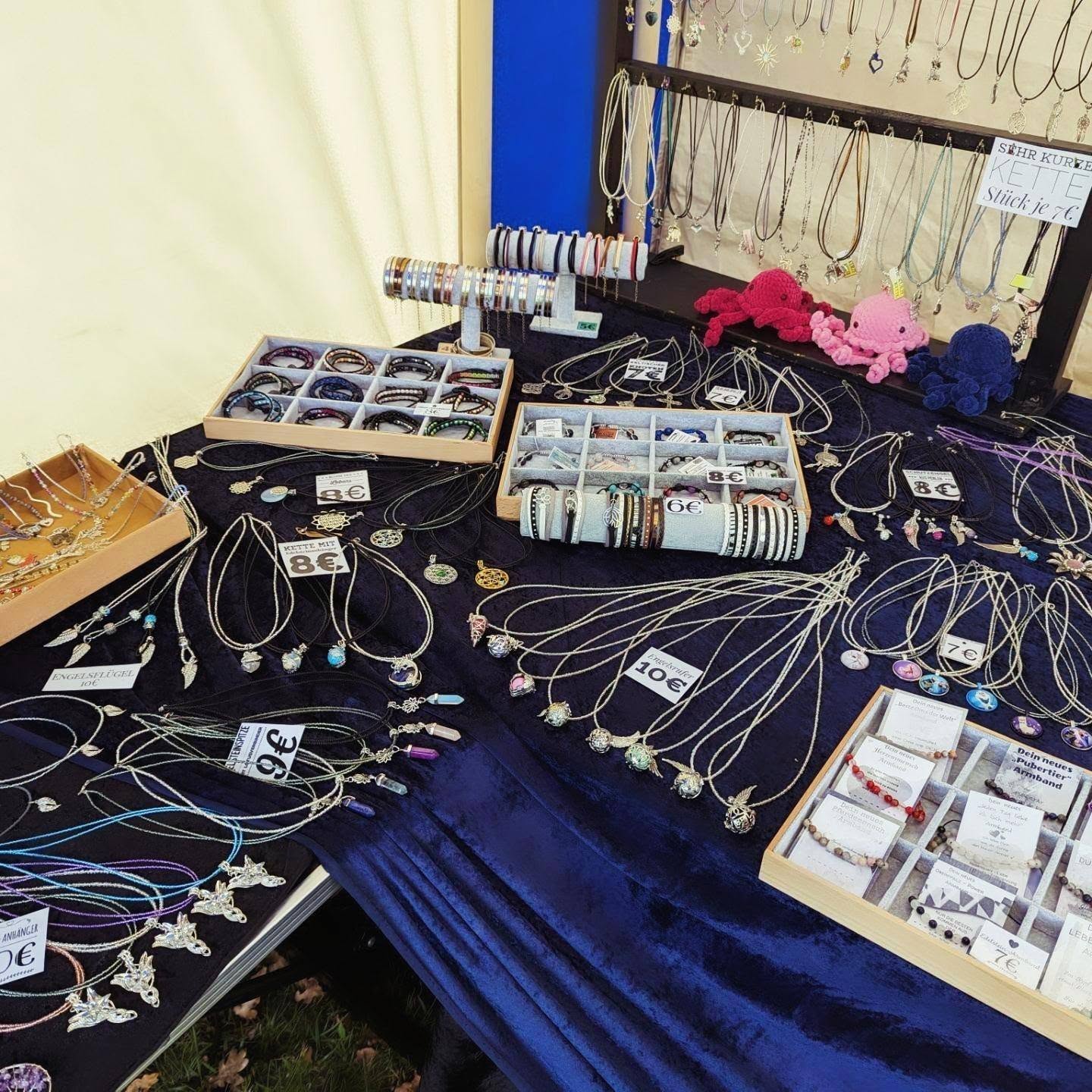Simone bringt mit ihrem liebevoll gestalteten Stand eine bunte Mischung aus handgefertigten Schmuckstücken, kunstvollen Häkelarbeiten und zauberhaften Edelsteinen zu uns.